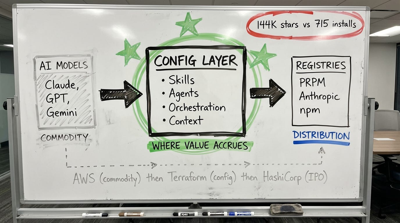 The model is becoming a commodity. Claude, GPT, Gemini, whatever ships next quarter. The value layer has moved. It’s sitting in the config, the skills, the orchestration, the context management. The stuff that makes the model behave like your model instead of everyone’s model.